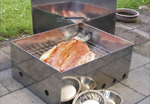 Portable smokers are available at any good outdoors shop and even most fishing tackle shops stock them. The simplest and least expensive ones consist of just a small stainless steel box containing a wire mesh rack. Underneath the rack sits the sawdust and underneath the box sits a small dish. Into this dish goes the methylated spirits fuel to heat the sawdust. Simple portable smokers like these are fine for smoking a few fillets of fish. If smoking whole fish or quantities of fillets, then you may need to utilise a larger portable smoker. These are usually box shaped, and of various sizes, but can be large enough to accommodate a few layers of smoking racks. The sawdust goes in the bottom as with the smaller units, but the heat source is a little more sophisticated; usually natural gas provided by way of a gas cylinder, the same type of cylinder used for your barbecue.