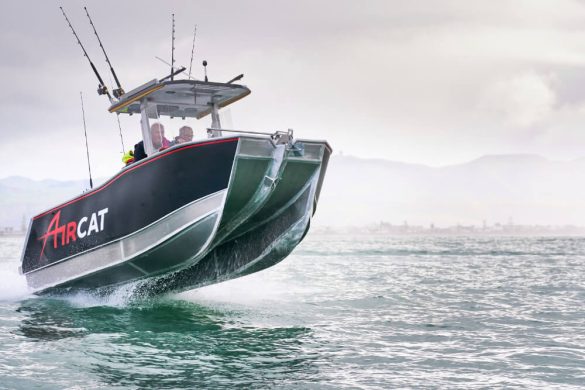 The AirCat has very deep vee forward sections helping it to ride softly through chop and waves. The flat sections aft help keep the hulls trimmed correctly and lifts the hulls free of the water, lowering displacement at speed. The consequence of this says Tweddell, is not only a soft ride but it is more stability at speed and dryness.