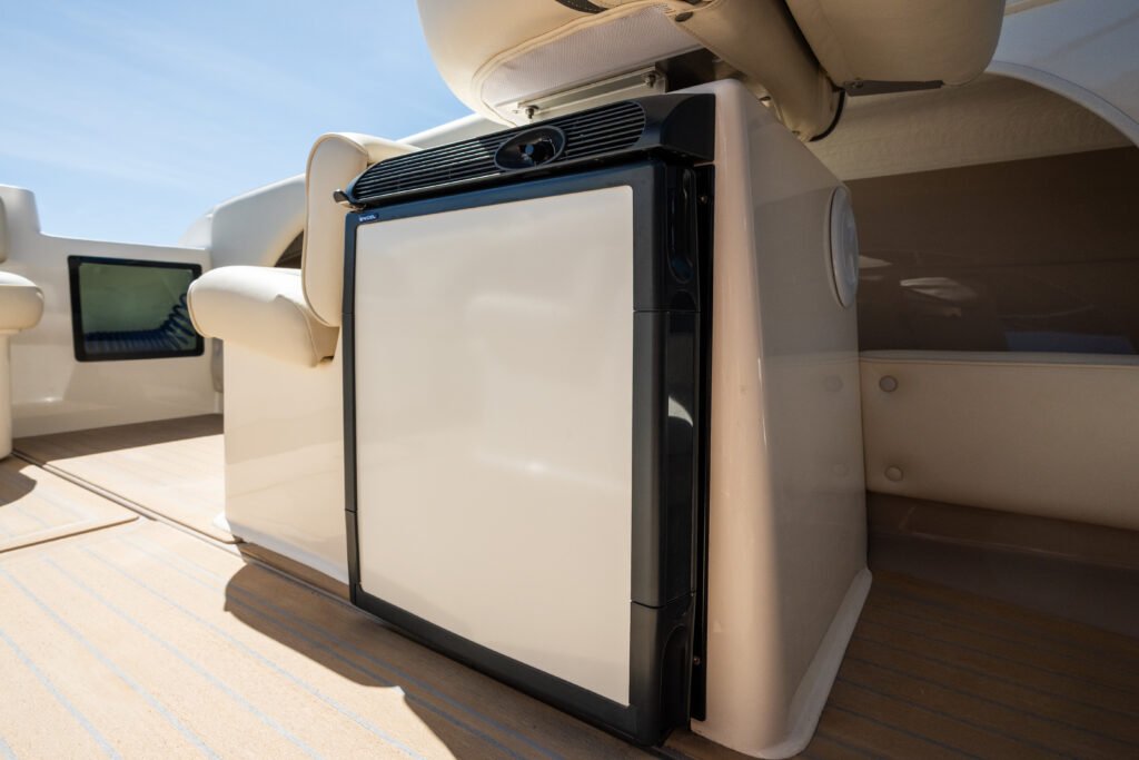 There have been updates to the deck, cabin, and liner mouldings. There is a new transom layout, and there are new seating options too — including the ability to fit a fridge under the base of the portside seat.
