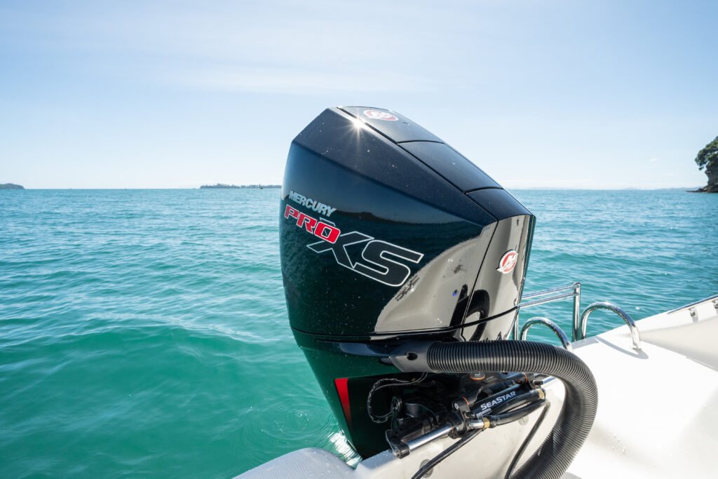 Sitting on the transom is Mercury’s new Pro XS four-stroke outboard — and wow, what a motor.