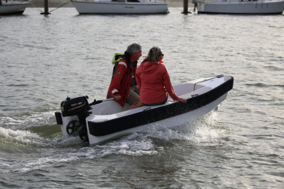 A key benefit is the ability to land on a sandy beach and wheel your tender clear of the waves and tide, all by yourself, no longer needing a team to haul or relaunch. Compact size and light weight also make lifting onto davits or the foredeck effortless. The pram bow design provides generous internal volume and planing area comparable to a tender 200–300 mm longer with a sharp bow. With a secure forward locker, a unique drop-down wheel system operated from inside the boat (no more leaning over the transom), ample stowage, and true rowing capability, Carbon Tenders believe they’ve created a proper little boat for the market. Their range includes 2.8 m, 3.1 m, and 3.4 m models, suitable for outboards from 3 hp up to 15 hp.