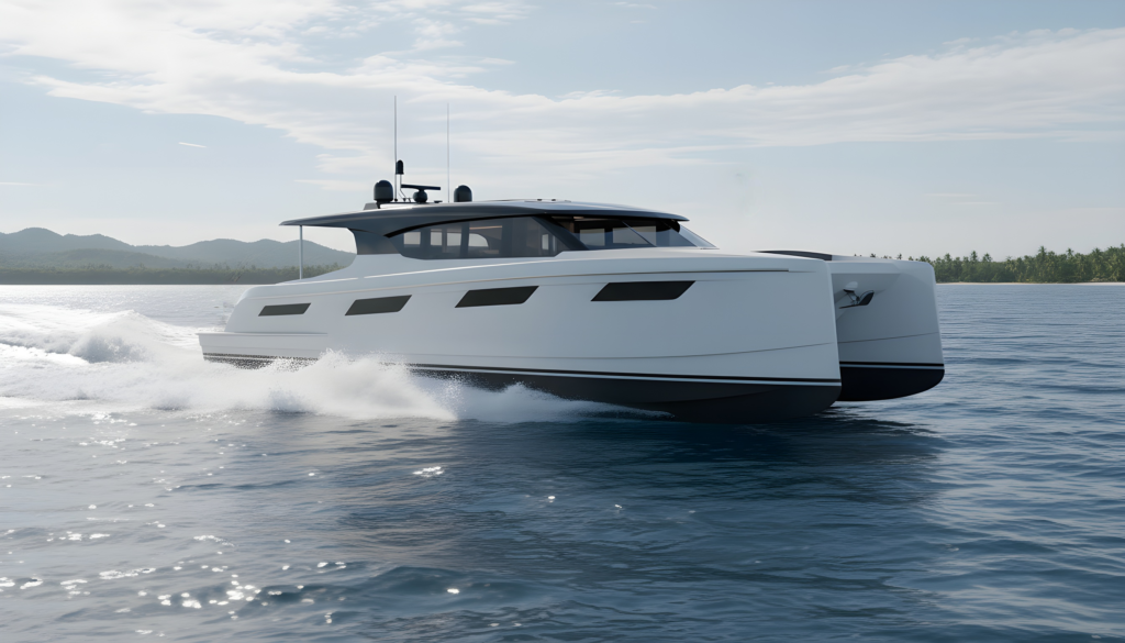 He was also commissioned to design a 17m displacement power cat, currently under construction at a nearby yard, for which DEMEY Yachts is also supplying custom joinery and components.