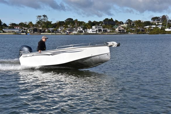 Despite not being the right match, the V4000 is still a little rocket ship. Acceleration is instant and doesn’t take long to reach maximum speed. In this case, it was somewhere in the low 30- knot region. The boat had no tacho or speedo, but my phone showed around 31 knots. While the Yamaha 50hp is probably enough power, I would go for the Yamaha 60, as it is the same weight as the 50hp, and there is nothing like having a bit more power when you need it. There is not enough height under the floor to build in a decent size fuel tank, so provision is made for a pair of tote tanks.
