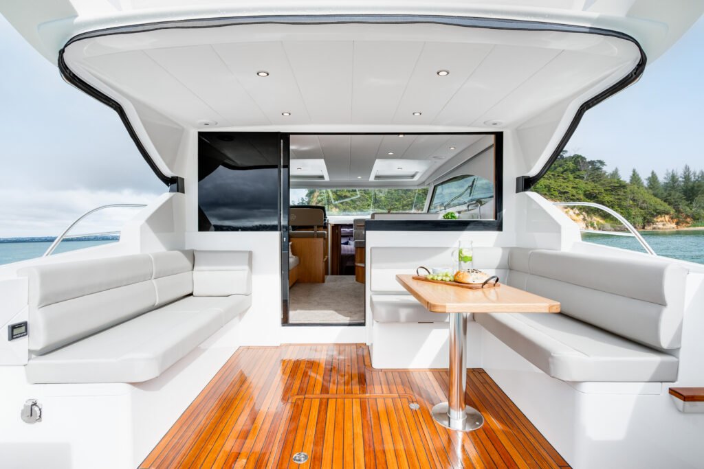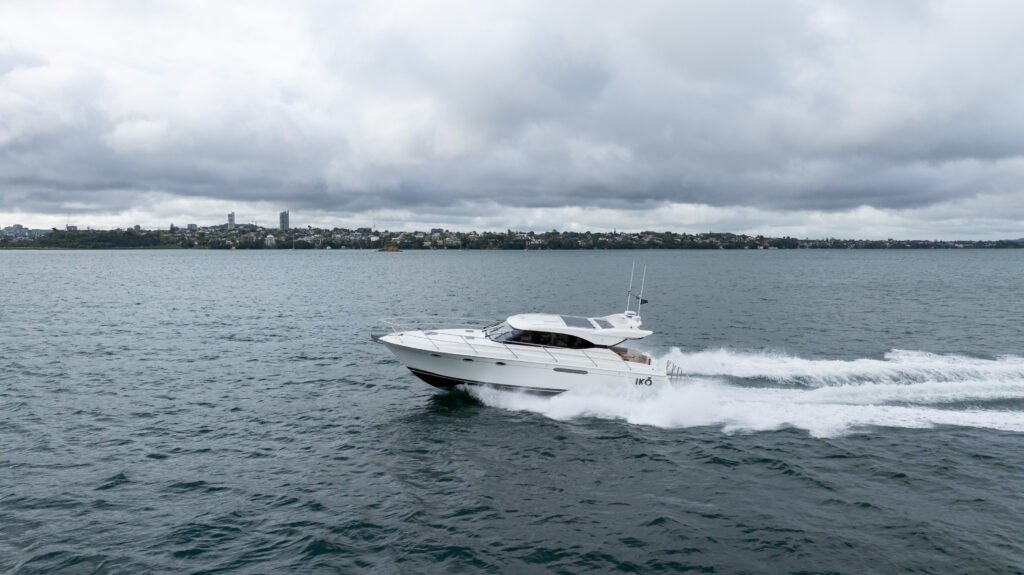 In creating the Elite AT43, the designer and builders kept it simple, because it’s easier to handle and maintain a simple boat. The Elite AT43 is a 13.2m sedan to fit a 13.5m marina berth. It can easily to be extended at the swim board during build to take full advantage of a 14m berth. The Elite AT43 was initially marketed by Hammer and Tongs Creative, run by Nigel’s wife, Ester Tongs. When Allan retired in 2022, Ester joined Allan Tongs Boatbuilders full-time, bringing her marketing and décor design skills.