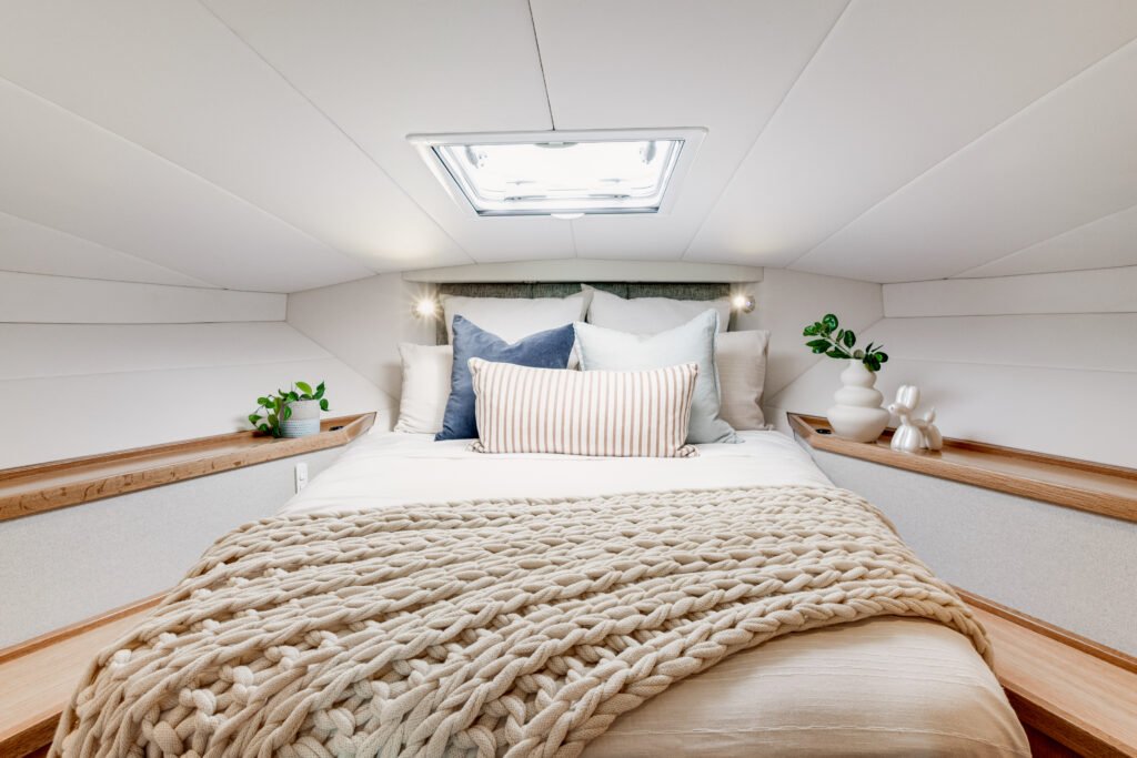 Ikō’s onboard power system runs on AGM batteries charged by the engine and solar panels on the roof.