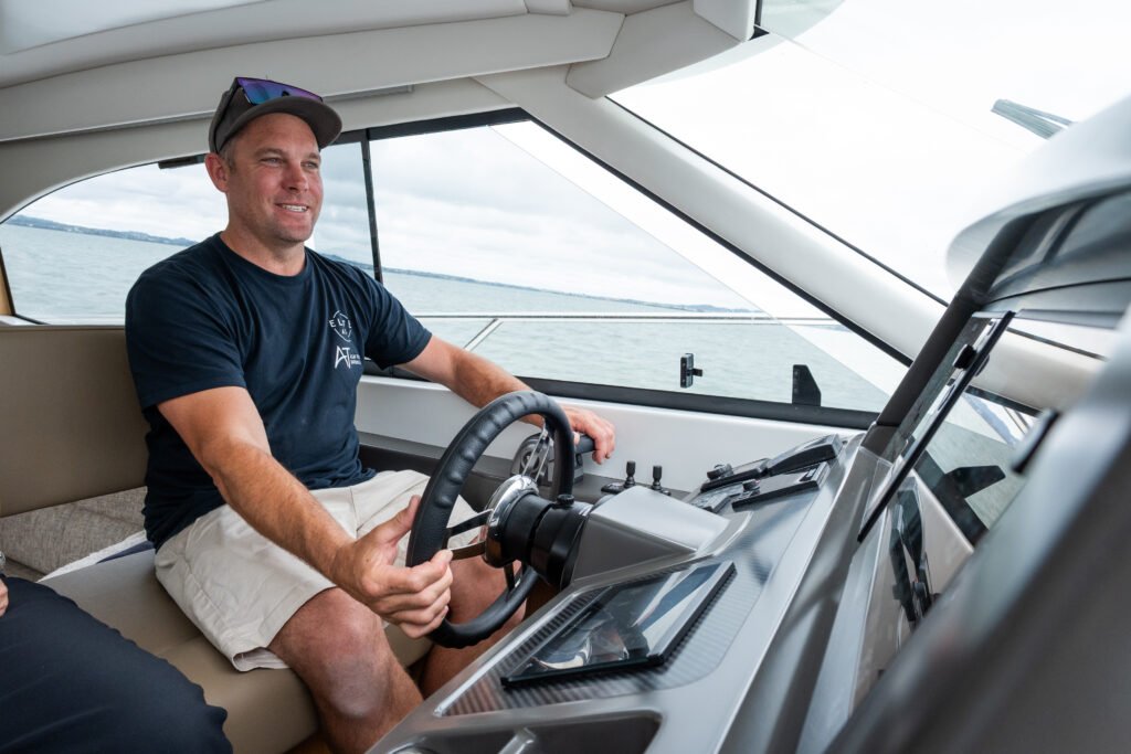 ‘Not everyone can envision what a boat will be like from the plans,’ Nigel says. ‘Customers can walk onto the Elite AT43 at a boat show and touch, see, feel what they’re going to get, but also request some modifications.’