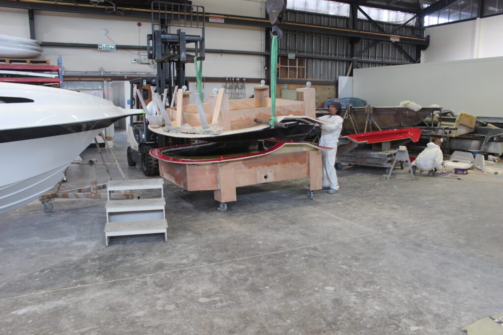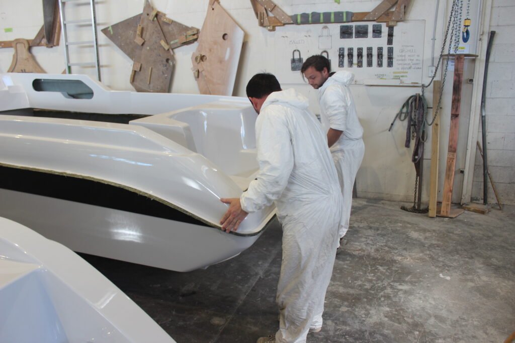 The big reveal – the hull is removed from the mould: The hull and deck become a boat: