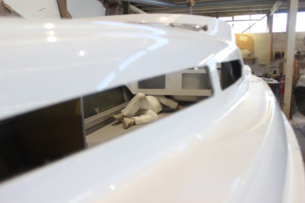 With the installation of the side windows, the main structure of the boat is now complete. Now it is down to installing all the componentry and finishing details. As is the case with all complex machinery builds… 90% done and 90% to go.