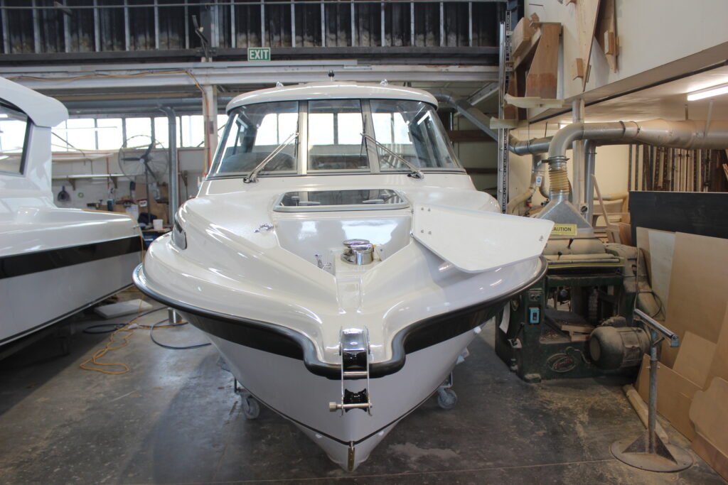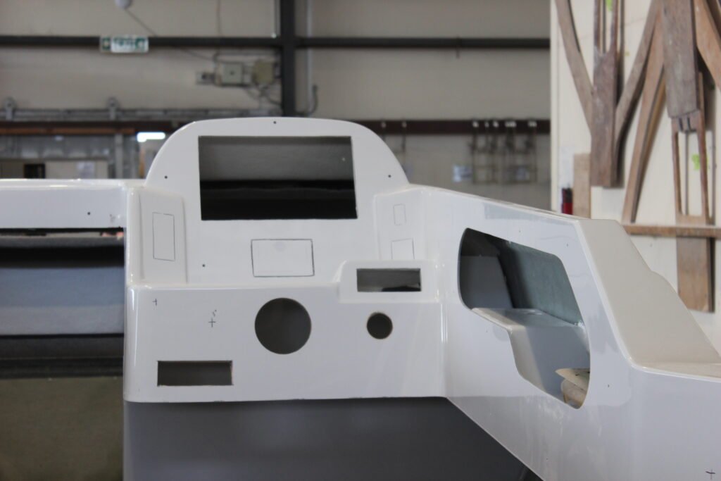 Following the completion of the hull, the cabin bulkhead and soles are installed. Once again, Haines Hunter has moved with the times, using foam core composite construction. Not only does this glass-foam-glass sandwich make the boat stronger, lighter and faster, it also improves strength, rigidity, durability and is more accurate – it does not warp or change shape. The foam components are supplied by Gurit Advanced Composites as kits, taking advantage of Gurit’s CNC cutting service to ensure every piece is 100% accurate.