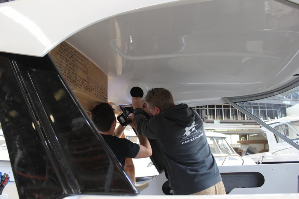 The boat we followed during its construction is an SP635 Sport Pursuit. The Sport Pursuit range consists entirely of hard tops, with the 635 featuring a completely redesigned hull that incorporates a different bow entry and reverse chines, while maintaining the 21-degree deadrise that provides the great ride for which Haines Hunter is renowned.