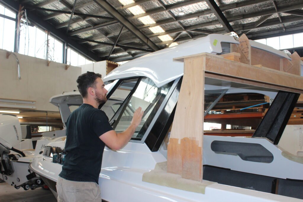 The amount of fabric used is the same for every boat; it is a measured quantity that ensures the optimum amount of resin is used (with no wastage) and that every hull meets its design weight. Being within design weight is important not only for on-water performance but also for towability.
