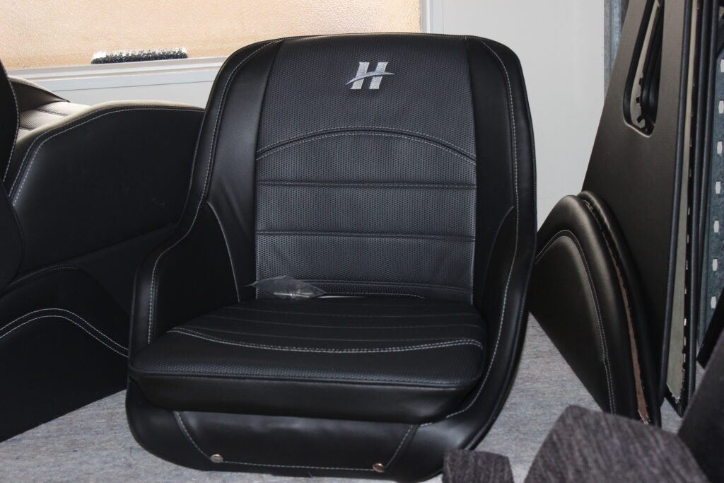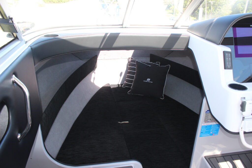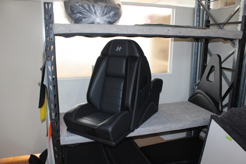 Although the boat builders are responsible for the upholstery on the side panels, Haines Hunter has a full, in-house upholstery studio. Once the boat is about halfway through construction, the upholstery team begins work on the seats and cabin squabs, ensuring they are ready as soon as they are needed on the boat. Their workmanship is first-rate.