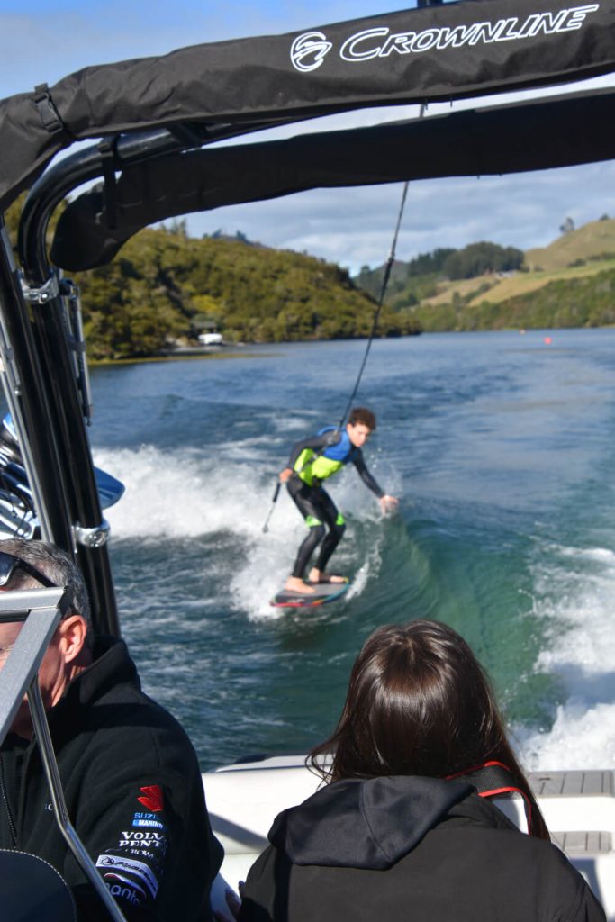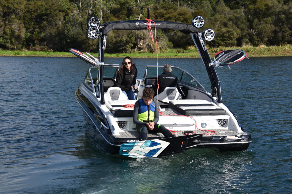 In the US they class this as a Ski/Wakeboard boat, which is a huge segment of the US market, of which Crown line is one of the market leaders. This is the second Crownline Surf to arrive in New Zealand, the first being the E235 Surf. Now you may ask what dictates the Surf designation.