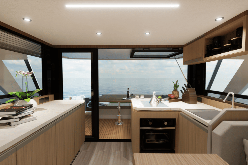 Designed by Marco Casali (Too Design) and engineered by Micad, the Greenline 42 features contemporary European styling and a seamless indoor-to-outdoor flow that enhances social connection and ease of movement onboard. A lighter galley arrangement with sliding side windows opens the saloon to the surroundings, while new furniture lines and cabinetry options increase customisation and aesthetic choice.