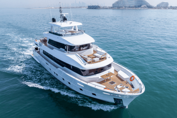 Setting a new standard for sustainable yachting, the Gulf Craft Nomad 101 perfectly blends innovative design and performance and is the ideal yacht for those looking to venture afar upon a luxurious yacht with little environmental impact. Thoughtfully designed, this 30.34-meter yacht is one of the world’s only tri-decks at this length, and can comfortably accommodate up to 10 guests with further room to house six crew members. Generous space is dedicated to entertaining and guests’ comfort and adventure onboard.