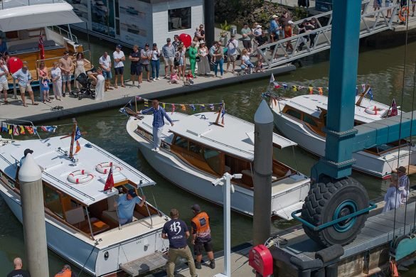 The Boat Works hosted the official splashdown of three iconic Halvorsen timber motor yachts, returning to water after three years of meticulous restoration works.