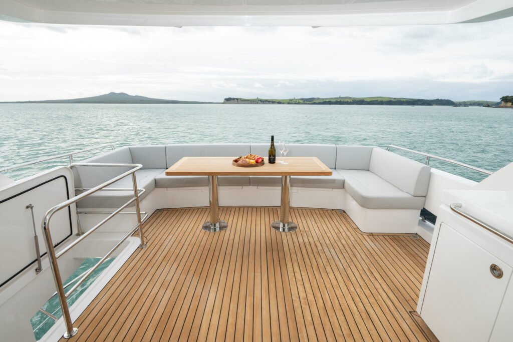 Wide, S/S framed sliding doors provide access to the stern cockpit area which has been custom designed to appeal to Kiwi and Aussie customers.