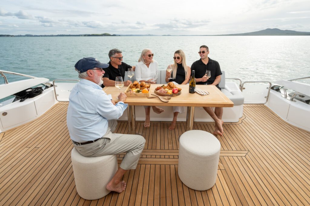 On our way back to Viaduct Harbour, while sitting in the comfortable stern cockpit, with a glass of wine on the table in front of me, I noticed a slight vibration. I discussed this with Ronan and Will. They acknowledged the minor issue and concluded that one of the engine shafts was likely slightly misaligned and would be checked and remedied. To be fair, the boat, with just 11 hours on the clock, had only just made its way into the country and had undergone initial sea trials only the day prior. I’m sure all issues will be resolved when full sea trials are completed.
