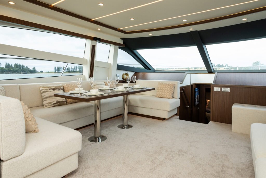 Two very comfortable ‘captain’ chairs provide good line of sight while seated underway and allow for full, ergonomic access to all controls. The only thing I’d add to Ronan’s ‘areas of improvement’ comments about the helm (and I am being a bit petty), is the addition of cup holders. Let’s face it, we Antipodeans do like to enjoy a drink while enjoying our voyaging, whether it be a hot cup of coffee or something more libatious. Having pointed this out, in conversation with Will Wang, he commented that cup holders could be easily added upon a customer’s request.