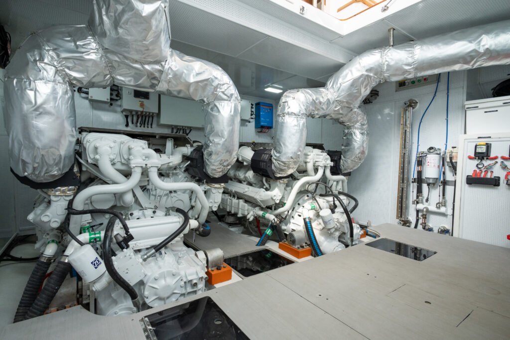 The ideal cruising speed sits around 10–11 knots at approximately 1600 RPM. At this speed, the boat trims nicely and feels very balanced in the water (noting this will vary slightly depending on the vessel’s weight and conditions). Fuel burn was in the range of 40–50 litres per hour per engine, which I’d consider quite reasonable for a vessel of this size.