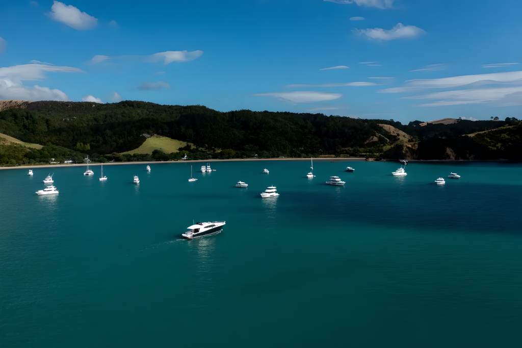 A Maritimo’s offshore capability and long-range efficiency make this passage well within comfortable limits. Once arrived, the island’s western harbours, including Port Fitzroy and Whangaparapara Harbour, provide exceptional shelter and some of the finest natural anchorages in the country. These deep, protected waters allow vessels to remain safely at anchor in a wide range of conditions, making Great Barrier Island an ideal destination for extended stays.
