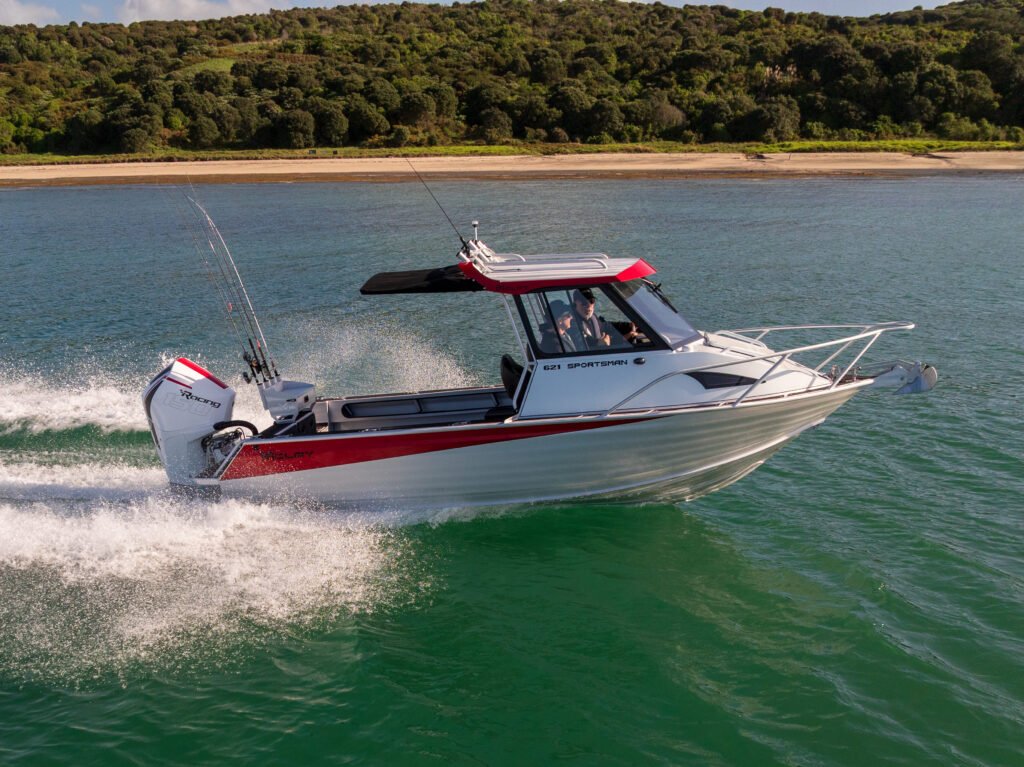 I first noticed the new McLay Sportsman 621 Hard Top at the Hutchwilco Boat Show a few months ago. Despite not being the largest boat on the McLay stand, it certainly stood out with its bright red and white paint job and colour matched ‘racy’ Mercury 150R V6 outboard. Spotting Steve McLay, I wandered over to greet him and find out more about this vessel. Why was I so interested (and not just because of the colour scheme)? Being very familiar with the McLay brand and their range of trailer boats and knowing that one of their best-selling boats in this size range is the 591 Hard Top (HT), I wondered aloud, why a 621 HT, as that’s only a length increase of 30 cm (an average man’s foot size)? So why bother? Especially considering that the larger McLay 651 HT is only marginally longer (30 cm) than this new 621 HT.