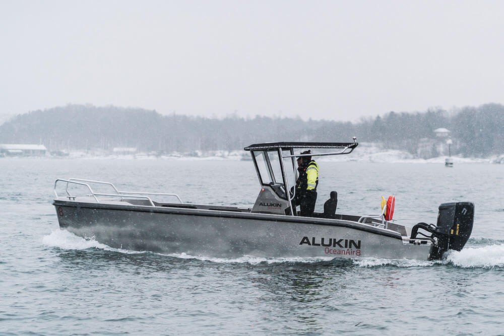 Alukin Ocean Air 8 is a concept boat that has been developed in collaboration between Nimbus Group’s brand Alukin and the two Norwegian companies Pascal Technologies AS and Evoy AS. The hull is based on Pascal Technologies’ energy efficient AirHull technology which requires up to 50 percent less energy for propulsion which increases the boat’s range by 50-100 percent compared to using a traditional hull. By using aluminium for Ocean Air 8’s hull and superstructure the boat is 100 percent recyclable, which further reduces the boat’s environmental impact.