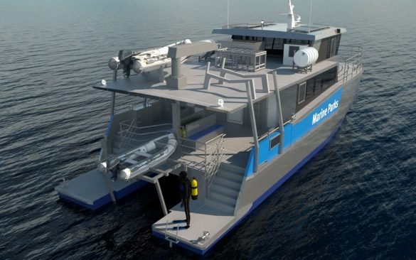 The hull has been specifically designed for the demanding Great Barrier Reef Field Management Program operation. The hull form features a new-generation Z-Bow, large reserve buoyancy and a nacelle to combat rough seas from south-east trade winds. The development process included operational experience from the existing fleet and computational fluid dynamics (CFD) to optimize the new solution. The performance was independently verified by rigorous speed and seakeeping tests at the Australian Maritime College’s (AMC) facilities.