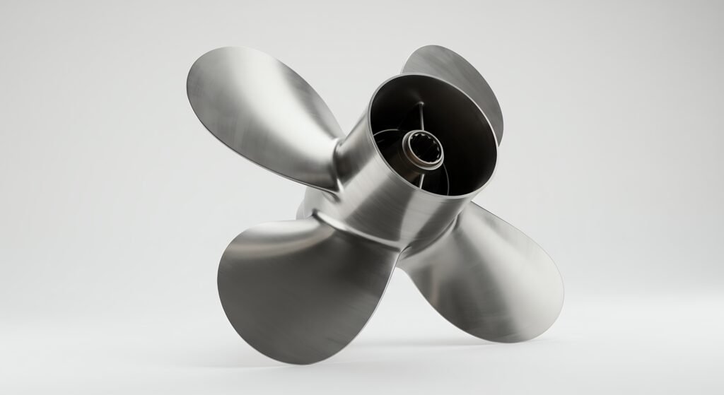 An outboard motor does not, in the true sense, have a gearbox. It is more correct to say that it incorporates a transmission housed in what is known as the lower unit, albeit with a fixed gear ratio which best suits that engine. This is a “reduction ratio” so that the propeller rotates at a much lower speed (RPM) than the engine, and except for selection of forward-neutral-reverse, there are no “stepped” gears to change. Simply put, if an outboard has a 2:1 gear ratio and reaches 6,000 RPM at wide-open throttle, the propeller will turn at half that speed – i.e. 3,000 RPM. The lower unit is the only way to get power to the propeller, and therefore to the water – the sole point of delivery, in fact. And this is why the propeller is the key to whether your boat will sprint like a racehorse or saunter like a carthorse.