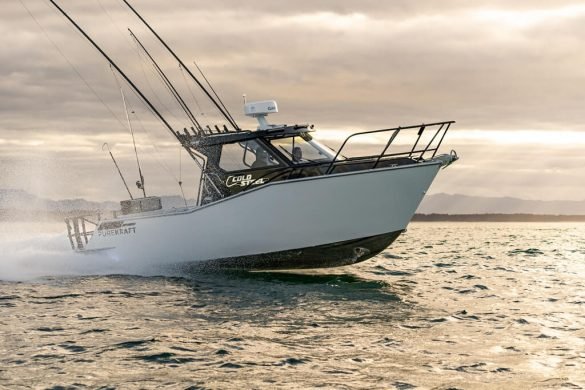 Powered by a Hyundai SeasALL 270hp diesel inboard running a Mercruiser Bravo 3 leg, Cold Steel is Tauranga fishing entity Macca’s 4th boat and the second he has had built specifically for him. It is his first Purekraft and he says he chose the local boatbuilder because his new boat had to be the “toughest” available. He also wanted it built to his specs and wanted to be able to work alongside the builder to get things exactly as he wanted them.