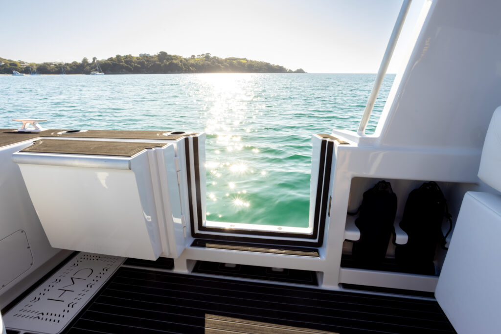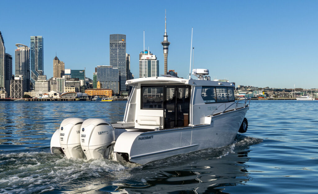 Back in July, I spent a few hours out on the Hauraki Gulf on Purekraft’s new, purpose-designed Rova 29 Amphibious on one of those spectacular, Auckland winter days that we don’t often experience, but when we do, they are stunning. So, what’s this boat all about? In a nutshell, it is a privately owned ‘commuter boat’, designed and built to the discriminating owners’ wishes, who wanted to be able to get back and forth between their property on Waiheke Island and downtown Auckland 24/7, if necessary, without the hassle and time-consuming process of using the regular ferries that run between the island and downtown. Commuter boat it may be, but this is a “Business Class” craft without being ostentatious. Designed to allow the owners not only convenient and fast passage (it tops out at 44 knots in good conditions), but also to allow them to work while on route between destinations. We’ll get to how it’s kitted out in order to achieve this goal, but for now (for any cinephiles out there), think of the ‘Lincoln Lawyer’ film that came out back in 2011. If you know the film, you’ll understand what I’m getting at. If you don’t, watch it, it’s worthwhile.
