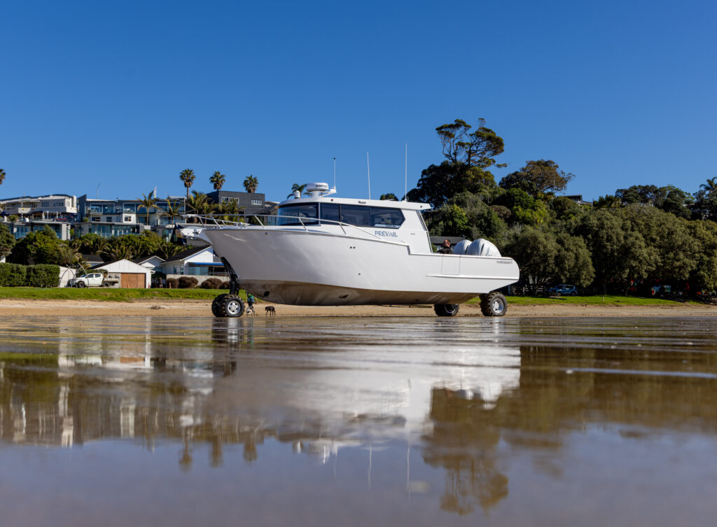 “Prevail”, a Rova 29, is a collaboration between four parties – Hall Marine Design, Purekraft Boats, Anura Amphibious Systems and, of course, the owners. The former two entities share design and production facilities located in sunny Papamoa, New Zealand. Here, against the backdrop of stunning landscapes and pristine waters, it is easy to understand the inspiration that drives these two companies, and which has led them to become industry leaders in marine innovation and design. Rova 29 by Purekraft is a range of new amphibious boats, with “Prevail” being the first.