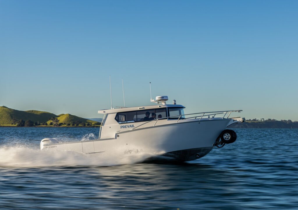 “Prevail”, a Rova 29, is a collaboration between four parties – Hall Marine Design, Purekraft Boats, Anura Amphibious Systems and, of course, the owners. The former two entities share design and production facilities located in sunny Papamoa, New Zealand. Here, against the backdrop of stunning landscapes and pristine waters, it is easy to understand the inspiration that drives these two companies, and which has led them to become industry leaders in marine innovation and design. Rova 29 by Purekraft is a range of new amphibious boats, with “Prevail” being the first.