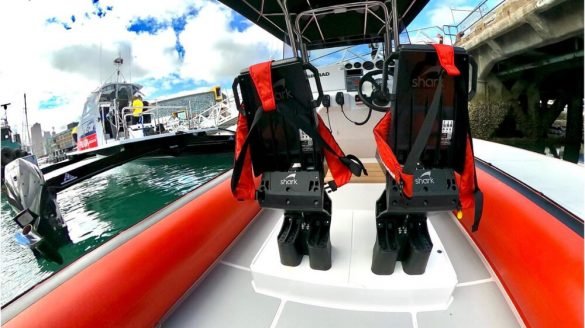 “With the increasing speeds of the Americas Cup yachts, chase boats have had to be entirely redesigned to keep up”, explains Shark Seats owner Paul Zwaan. “Our hydraulic suspension seats absorb the enormous loads created by travelling at high speeds over choppy seas. With the chase boats have to travel at over 50kts, the humans onboard are the weakest link in these robust vessels.