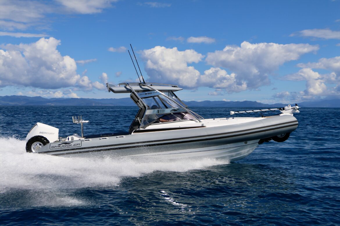 We launched the boat off the pristine white sands of Opito Bay (where every second house seemed to have a Smuggler Amphibious in thegarage), along with our photo boat which was a Smuggler 800 CC Amphibious.