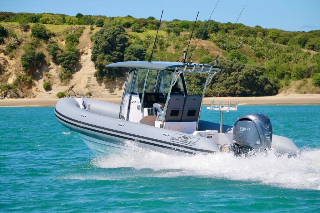 We elected to cruise at a higher speed, of 32 knots at 4000rpm, and in the choppy conditions, the Smuggler deep vee hull just ate up the chop with ease. The quietness of the Yamaha was amazing, allowing you to talk to your passengers alongside you at the helm normally, even when underway at around 4000rpm. While it’s more than capable of tackling rougher waters, it’s equally at home, cruising from bay to bay with a full crew of family and friends, and all in supreme comfort. At rest, the 750 is exceptionally stable. The aft section of the tubes sit in the water and don’t let the boat lean to one side. This is down to the hull featuring a flooding keel, in which around 150 litres of water is taken into a cavern built into the bottom section of the hull, holding the boat down in the water, and thus extra stability at rest. For a boat of its size, it’s actually very light, with a trailerable weight of just 2000kg, meaning it’s relatively easy to launch and retrieve with minimal effort. Will the centre console layout suit everyone? No, but Smuggler does have a variety of other configurations for the 750, including a ‘Mid Cabin’ model and a ‘Super Sport’ which is essentially a bow-rider type configuration. And if the boat isn’t big enough, the company has other models and configurations 8 metres and above.