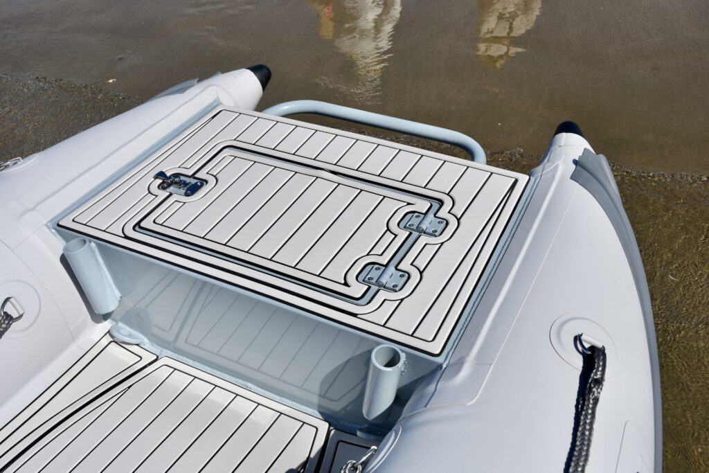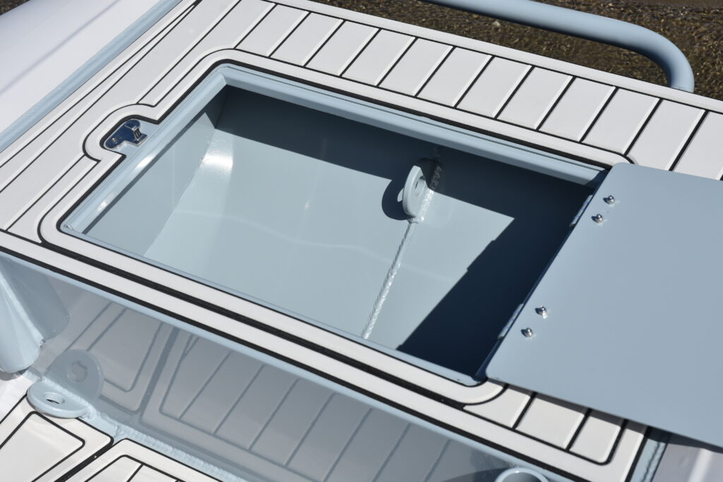 Forward, the anchor locker and casting platform prove their worth, providing easy storage and access for anchors and gear, as well as a convenient step when boarding from another boat, jetty, or the beach. About the tender, practical touches like four lifting eyes for davits, rod holders forward and aft, and tow eyes fore and aft, all combined in 3 meters, make the LX-R feel ready for anything a three to four-meter tender would ever be asked to do, from ferrying passengers to coastal diving adventures or just an afternoon out fishing.