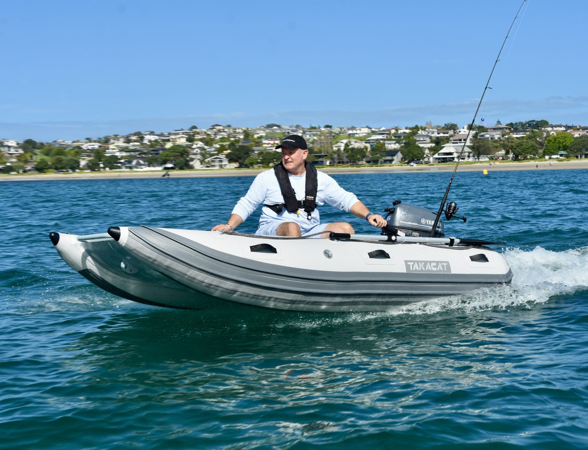 Climbing aboard the new Takacat T300 LX-R, the first thing you notice is how solid and well-built it feels. This New Zealand-designed inflatable catamaran RIB is a compact tender, but it carries itself with the confidence of a much larger craft. The dual 3mm alloy deck and rigid central hull give it a reassuring heft underfoot, while the oversized 1.2mm TPU tubes provide excellent buoyancy and stability that you can feel immediately.