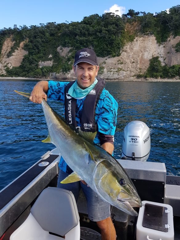 Without a doubt the best way to tangle with a kingfish is to deploy a live bait. The NZ and World Record 52kg kingfish taken on 15kg line was caught on a live kahawai off Tauranga. If you head out and come across a school of kahawai or trevally on the surface, there is a good chance a kingie or several are below them. Use a lure or small bait with hook to catch a kahawai or trevally, even try foul hooking one with a treble hook will do and send the live bait down on a 24kg ledger rig under the school of baitfish. A second livie can be used under a balloon on the surface. Keep the live bait(s) close to the baitfish, watch the surface activity and below on the sounder. Move the boat slowly when needed to keep closer to the schooling fish. Overhead lever drag reels are best as you want the live bait in free spool with the clicker on for that strike. Make sure you also use a circle or recurve hook too, these are the best for hooking in the mouth if you want to release the fish unharmed after a few quick photos. I would recommend going on a specialist kingfish charter like Epic Adventures who put people onto kingfish off the Coromandel every week. They often spend up to two hours in the morning filling the live bait tanks with mackerel before heading out, caught with sabikis and small baits at change of light is the best. You will learn a lot from such a trip to grow your fishing experience. My favourite live baits in this order are mackerel, grey mullet (west coast), kahawai and trevally. These are the hardiest live baits and high on a kingfish’s menu, whereas squid, piper and yellow eyed mullet are also dynamite if you find them but are harder to keep alive over long periods. Spend the time gathering live baits and find the places kingfish inhabit and don’t give up if nothing happens for a while. Don’t get impatient and head off snapper fishing, stay the course and try berley to bring baitfish and kings into the area.