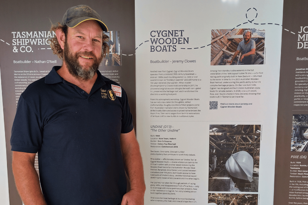 A spotlight on emerging Tasmanian boatbuilders, including Shippies Shipwright Services and A Boat by the River, was also included, alongside Tasmanian First Nations watercraft, historic piners’ punts presented by the Wooden Boat Guild of Tasmania, and stories of the west coast timber and hydro industry.