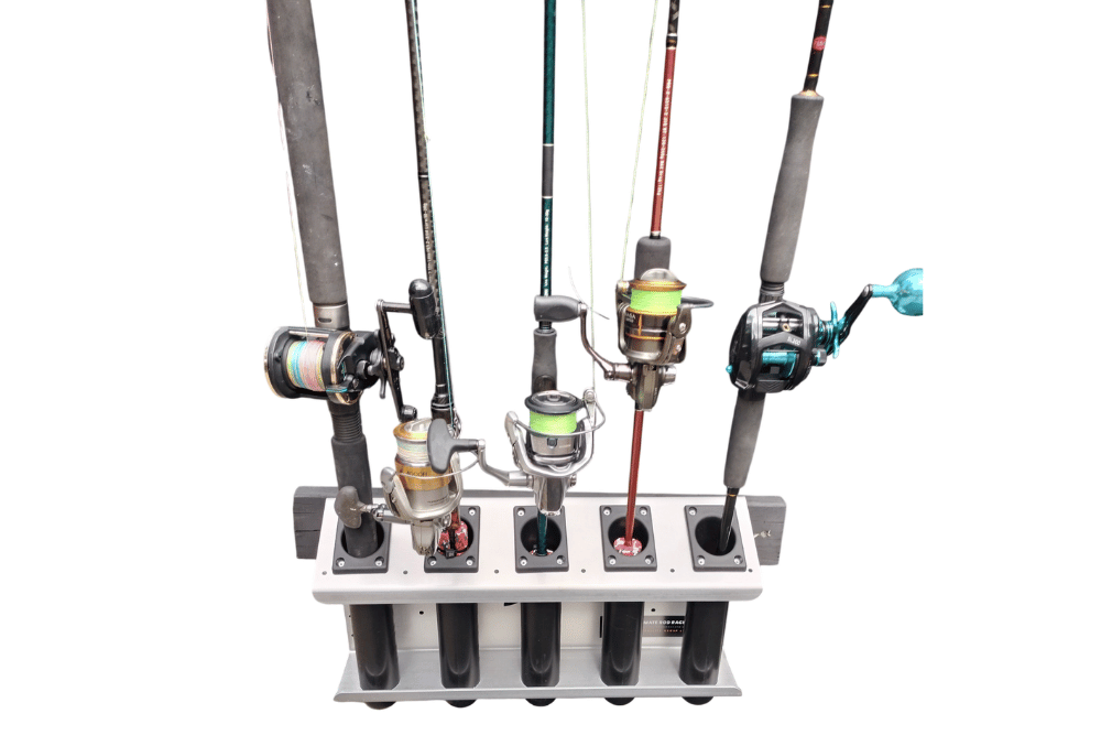 Designed for consoles, cabins and vertical surfaces, it holds five rods with full reel clearance, keeping gear organised and protected.