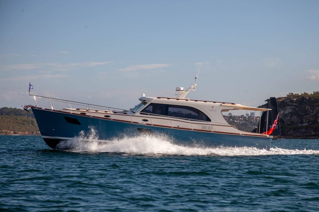 This cold moulded process involves applying layers of thin solid-wood veneers, oriented at different angles, to be saturated by epoxy over a computer-designed mould. With substantial forward orders for the Vicem 55, the company needed to move on from this somewhat slow build process. With the Vicem 55, construction is the more conventional fibreglass method using GRP, sandwich PVC and vinyl ester resin. The 55 Classic 55 falls in the middle of Vicem’s Custom range, which spans from 14m to 24m overall. Available in sedan style or flybridge, the Classic 55 typifies what Vicem boats are all about. Classic style with modern amenities. With over 150 boats built over the last twenty-five years, the Vicem 55 Classic has stood out as one of the company’s most popular models. While the Vicem 55 is the first of this model in Australia, there are already several Vicem’s cruising the local coastal waters.