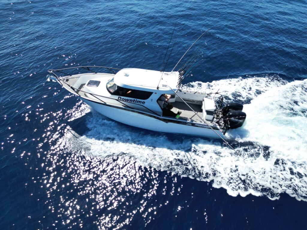 The power options for the 870 WA are essentially wide open. The recommended outboard is between 300hp and 500hp, this one powered by twin 250hp Suzuki’s as per the owners request. With the twin 250hp Suzuki’s, the 870 WA ‘Downtime’ was no slouch, achieving a top speed of 47 knots. At a sedate cruise of 23 knots at 3200rpm, the boat was using 43LPH across both motors. Combine that with the 500L fuel tank, and that gives the boat a cruising range of 230 Nautical Miles.