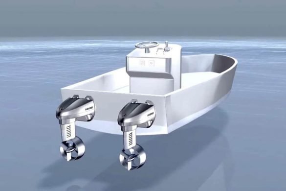 Yamaha has started trials on a twin electric boat motor unit that is integrated with a unique sterndrive.