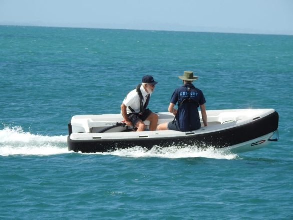 As the OTC hull is a relatively “flat bottom” design, I expected a fair bit of slap on the water under speed. As it turned out, with the highly manoeuvrable jet engine quickly getting the craft up on the plane, the boat handled the conditions admirably. I asked Nick how far I could push the boat to see what it was capable of. His reply? “Go for it”. So, as we both hung on to the convenient grab straps, I powered the tender through some pretty hairy turns expecting us to fish tail out of control. Not so! The boat spun on its stern like a ballerina with nary a hint of uncontrollability. In addition it was a remarkably dry boat with just the two of us on board and considering the dead rise of the hull is only about half a metre.